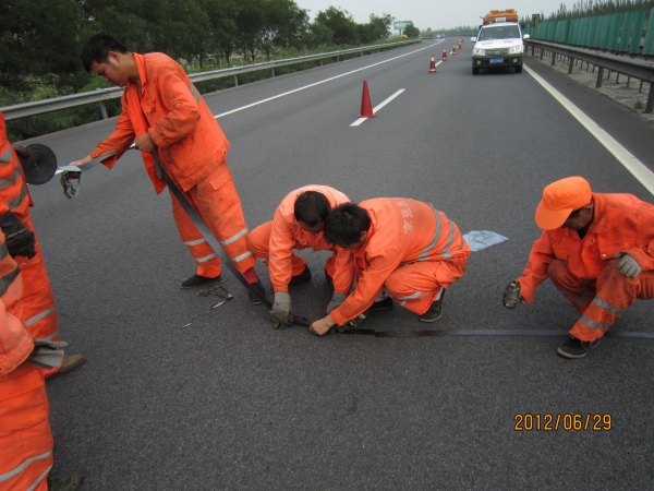 今年以來,工程部在全線灌縫工作中采用了新工藝、新方法配合施工,在原有對裂縫進(jìn)行開槽灌縫的基礎(chǔ)上增加了對細(xì)小裂縫不開槽直接采用裂縫貼處理的方法,此方法施工簡便,加快了施工進(jìn)度,新材料提升預(yù)防性養(yǎng)護(hù)水平(工程養(yǎng)護(hù)部)