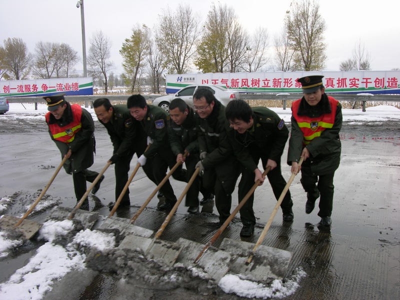 11月1日,一場揚(yáng)揚(yáng)灑灑的大雪襲卷了整個(gè)華北地區(qū),前幾天還是綠意盎然的收費(fèi)廣場,瞬間變成了銀裝素裹的天地,2009年的第一場雪在帶給人們驚喜之余,也給道路暢通和出行安全帶來較大不便。為了保證站口安全暢通,宣化東、下花園收費(fèi)站采取有效措施,及時(shí)啟動(dòng)了除雪保暢應(yīng)急預(yù)案。