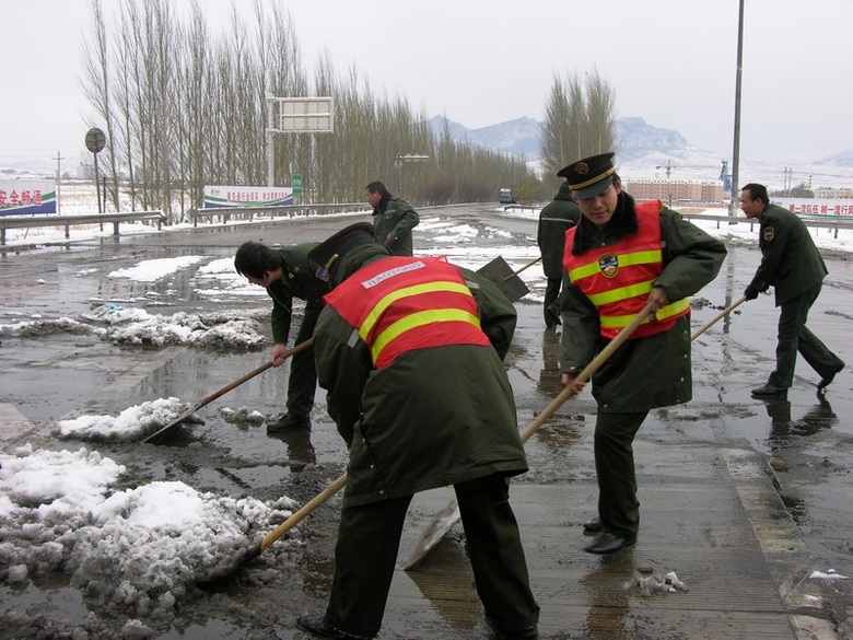 一是根據(jù)下雪時(shí)間調(diào)整除雪方案。1日上午一直在下雪,考慮到此時(shí)人工除雪效果不大,站領(lǐng)導(dǎo)決定采取灑布融雪劑的方法進(jìn)行除雪,對(duì)收費(fèi)車道、收費(fèi)廣場、院內(nèi)重點(diǎn)場所揮灑融雪劑,杜絕了積雪增多、結(jié)冰的現(xiàn)象。下午雪停后,則采取了人工除雪的方案。