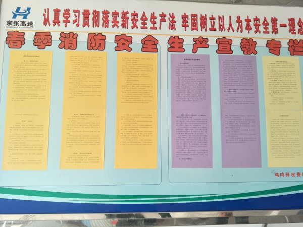 為增強(qiáng)廣大職工春季消防安全意識(shí),提高自我保護(hù)的能力,將全站安全生產(chǎn)工作做到防患于未然,雞鳴驛收費(fèi)站根據(jù)季節(jié)特點(diǎn),開(kāi)展了春季安全生產(chǎn)宣傳教育工作,制作了以春季高速路行車(chē)安全、消防安全知識(shí)、滅火器的使用、日常安全生活小貼示為內(nèi)容的安全生產(chǎn)宣傳教育專(zhuān)欄展示板,展板內(nèi)容簡(jiǎn)潔凝練、易懂易記。寓教于樂(lè)的學(xué)習(xí)方式更易被大家接受,提高了廣大職工學(xué)習(xí)的興趣。通過(guò)對(duì)專(zhuān)欄內(nèi)容的學(xué)習(xí),重新熟悉了干粉滅火器的使用方法、使用技巧;同時(shí),以學(xué)習(xí)筆記的形式,再次熟悉了公司各項(xiàng)安全生產(chǎn)制度及法律法規(guī),并要求大家要照章執(zhí)行。通過(guò)宣傳教育,明確了做好春季安全生產(chǎn)工作的重點(diǎn),有利于安全生產(chǎn)工作的更好開(kāi)展。(雞鳴驛收費(fèi)站 王春燕)